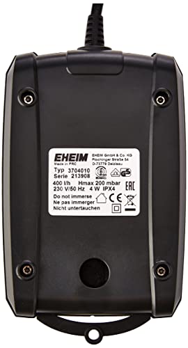 EHEIM 400 est une pompe à air équipée d’une sortie d’air à débit réglable jusqu’à 400 l/h pour une consommation électrique de seulement 4 Watts.